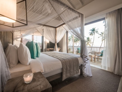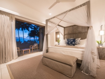 Fall asleep to the sound of the sea as you lie beneath a lightweight duvet on a custom-designed four-poster king-size bed and wake up to tropical sunshine and coffee out on your private furnished balcony or veranda. Located on the ground and upper floor, the rooms are air conditioned and furnished with bespoke wardrobes, satellite television, tea and coffee making facilities, and have spacious bathrooms with pebble-floor shower areas.